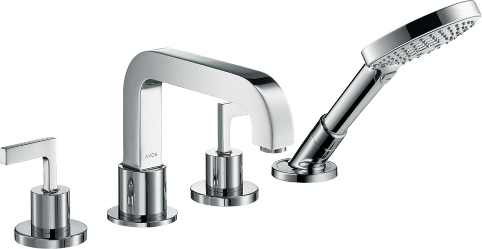 四孔翻边安装浴缸龙头,带一字把手和装饰盖