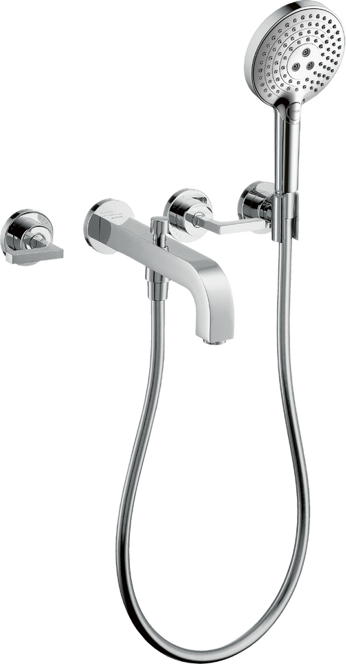 暗装墙出水三孔浴缸龙头,带一字把手和装饰盖