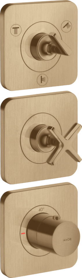 用作3路分水器:和型号no.36702000和no.36771000组合精确安装时(10 毫米间距) , 请选择订购暗装三功能恒温模块38 x 12 no.36704000以及基础套件 no.36708180