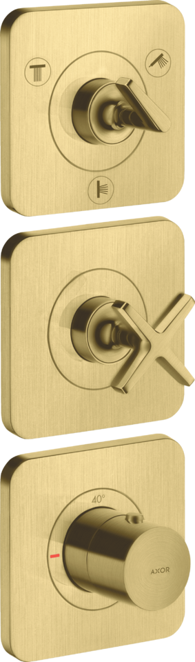 用作3路分水器:和型号no.36702000和no.36771000组合精确安装时(10 毫米间距) , 请选择订购暗装三功能恒温模块38 x 12 no.36704000以及基础套件 no.36708180