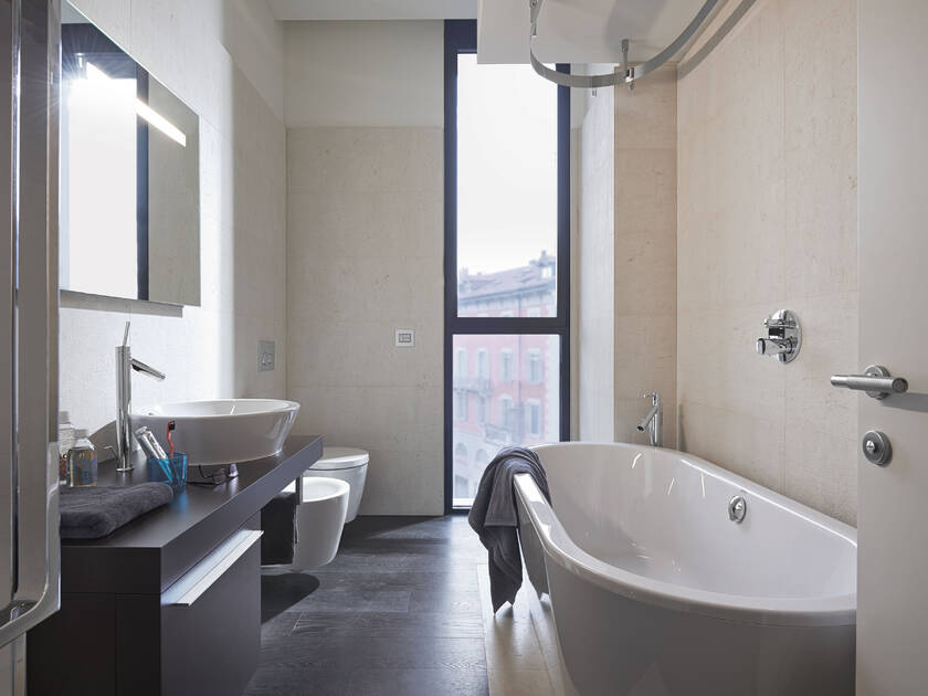 AXOR雅生浴室龙头风格多元,是狭小浴室获得奢华装饰的最佳之选,能够在面盆、淋浴和浴缸处不断突显奢华公寓的整体概念。